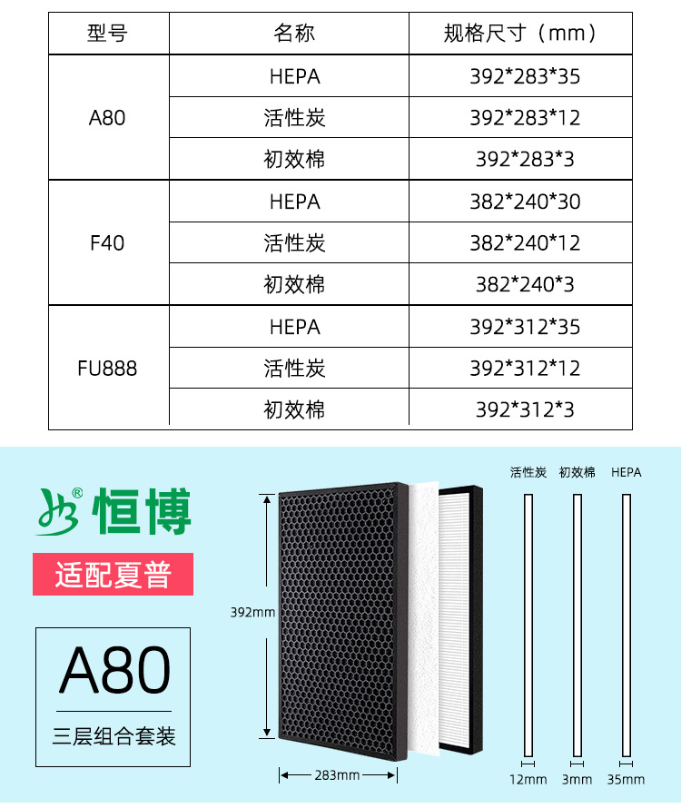 夏普飛利浦松下小米空氣凈化器濾芯HEPA高效過濾器圓形活性炭濾網