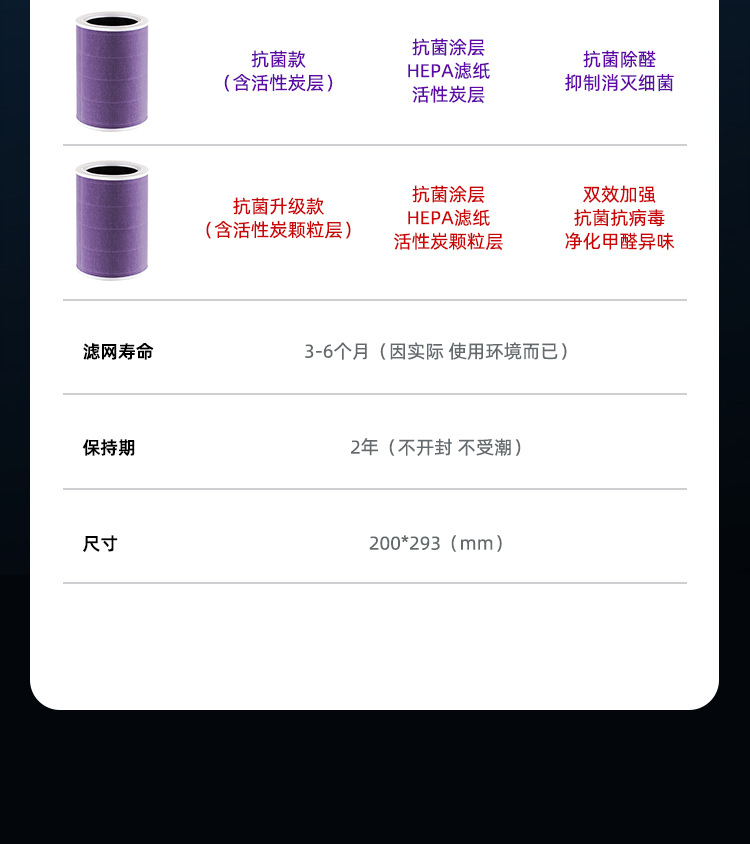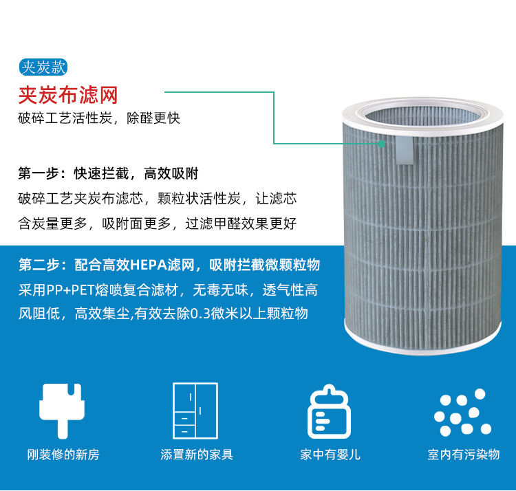適配小米空氣凈化器濾芯2s/1/2/3 代pro家用除甲醛霧霾抗菌過濾網(wǎng)
