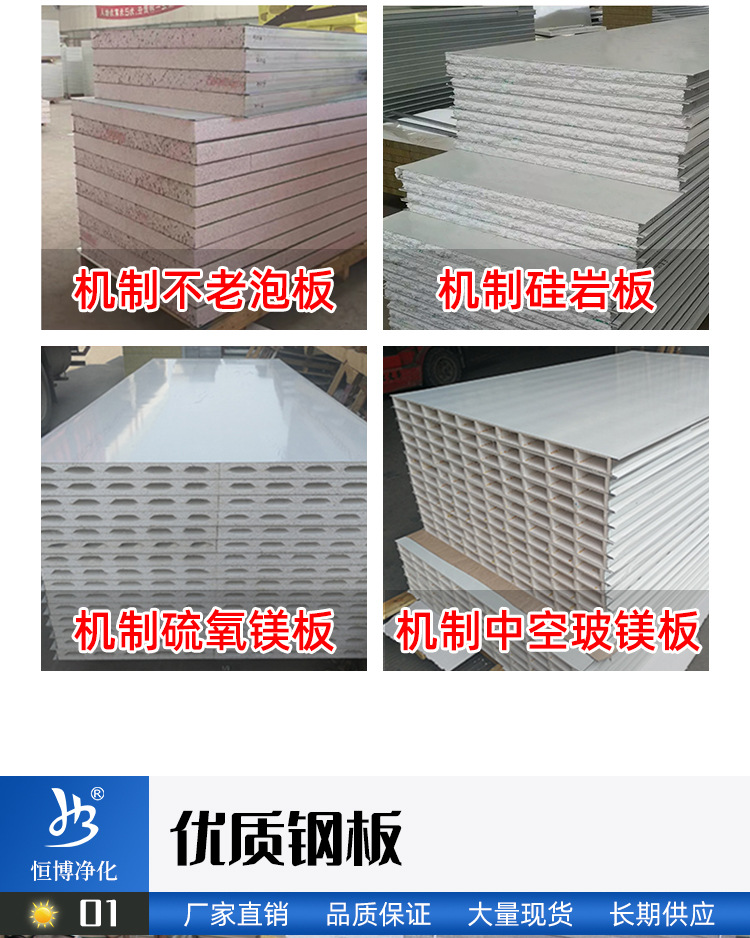專業(yè)設(shè)計(jì)無塵室車間醫(yī)院手術(shù)室施工泡沫板巖棉彩鋼板隔墻凈化板材