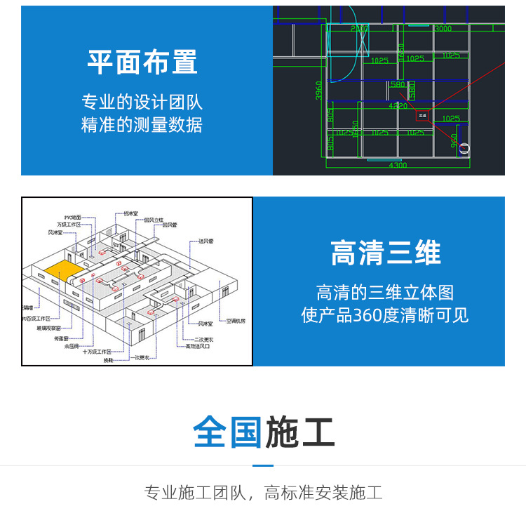 設計美容整形醫院手術室無塵室車間凈化板防火板巖棉彩鋼板包施工